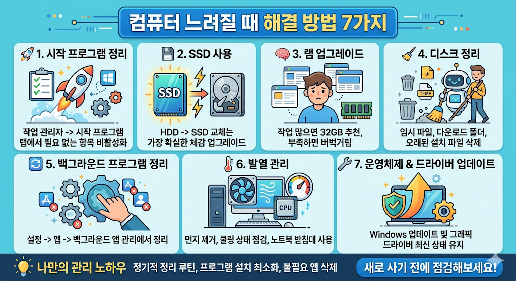 컴퓨터 느려질 때 해결 방법 7가지 – 직접 해보며 정리한 나만의 노하우 공유