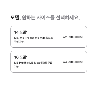 세 가지 강력한 맥북프로 M5 모델 중 어떤 것이 당신에게 가장 적합할까요? 당신의 작업 환경과 예산을 고려한 맞춤형 추천을 제공합니다.